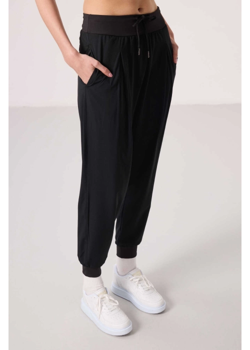 Cepli Standart Kalıp Polyester Siyah Kadın Pantolon