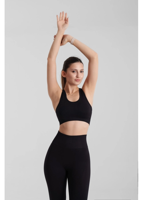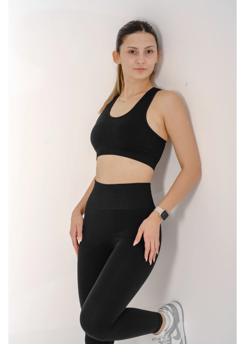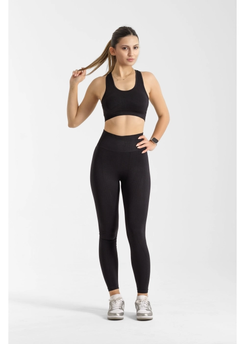 ? Hareket Özgürlüğü ve Kusursuz Şıklık! Spor yaparken maksimum destek ve konfor arayanlar için tasarlanan Dikişsiz Push-up Toparlayıcı Bra-Tayt Siyah Renk Spor Takım, toparlayıcı taytı ve push-up etkili spor sütyeni (bra) ile vücudu mükemmel şekilde sarar. Esnek kumaşı sayesinde hareket özgürlüğü sunarken, yüksek bel taytı ile sıkı bir duruş sağlar.