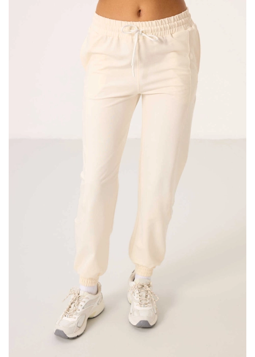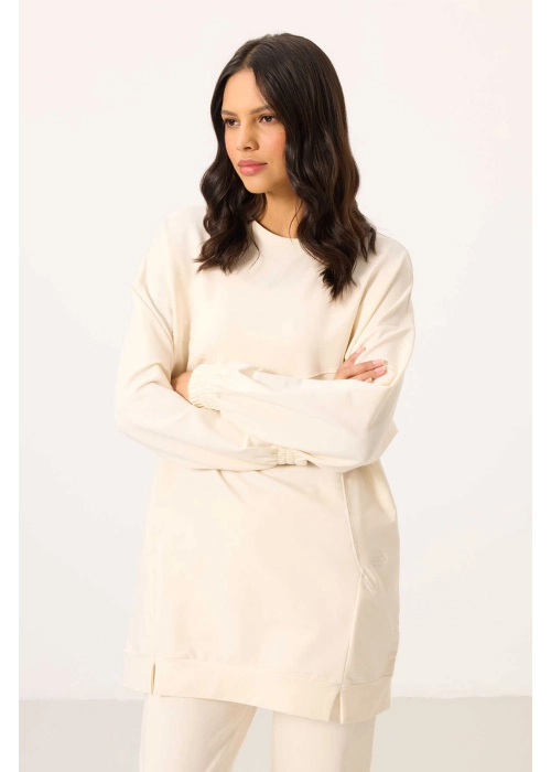 O Yaka Basic Oversize Ekru Kadın Eşofman Tunik Takım