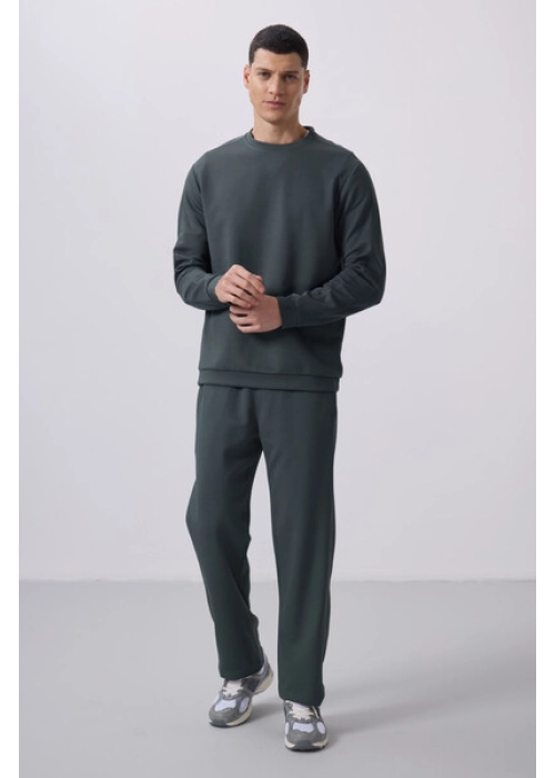 Femora Yüzeyi Dokulu Oversize Erkek Haki Eşofman Takım